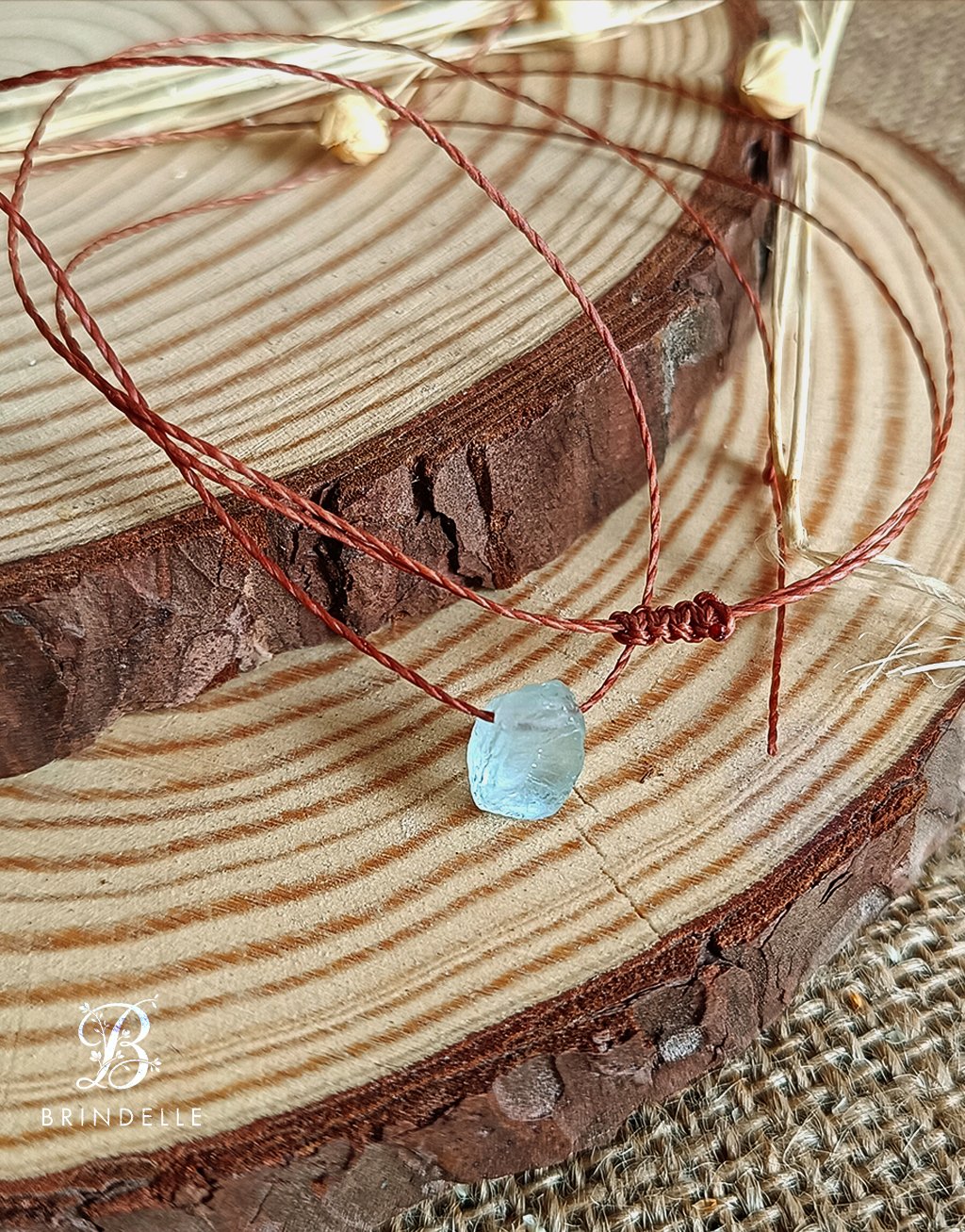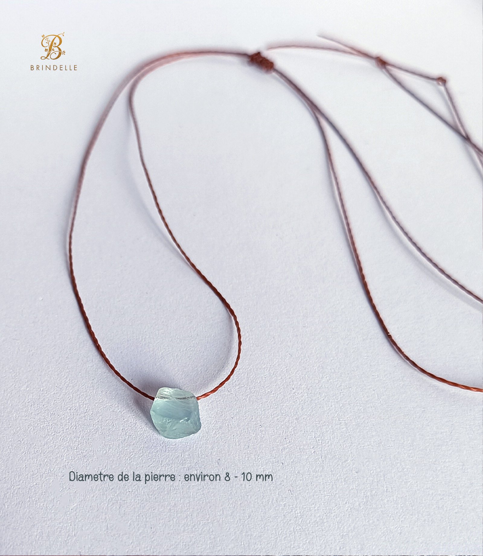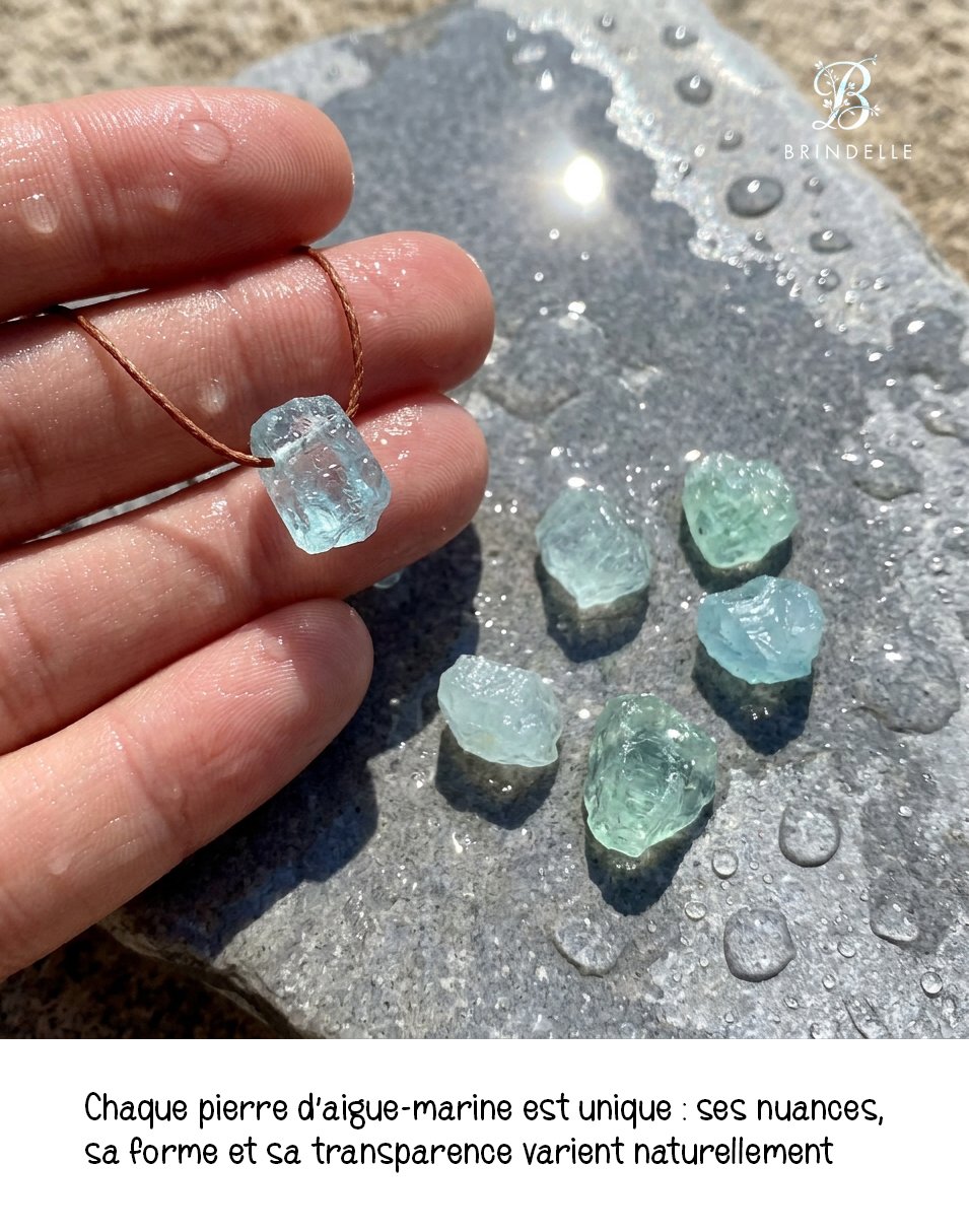 • Pierre : aigue-marine brute naturelle (8–10 mm)